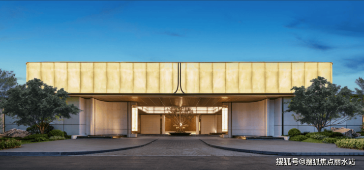 超高标准打造的宽超50米、高约10米地标级门庭,大面积贝金米黄花岗岩铺陈的立面,辅以仿古铜铝板收边,既沉稳大气又不失灵动优雅。