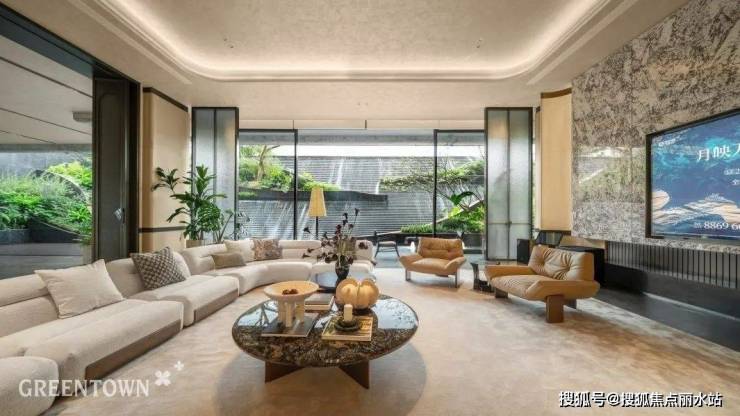 车行抵达如追光逐影之旅,绿意盎然的庄园地库,无界下沉庭院,自然光源与绿意花木,演绎尊崇与松弛。