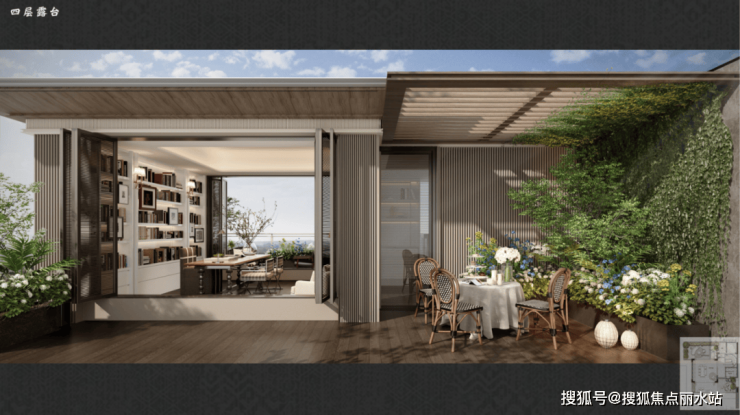 四楼连接书房的是一个超级星空露台,可打造空中花园、设茶艺雅座或开辟健身休闲区,随心切换生活场景。