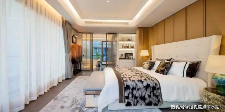 整个套房里还配备了通透的卫浴空间和独立的衣帽间。