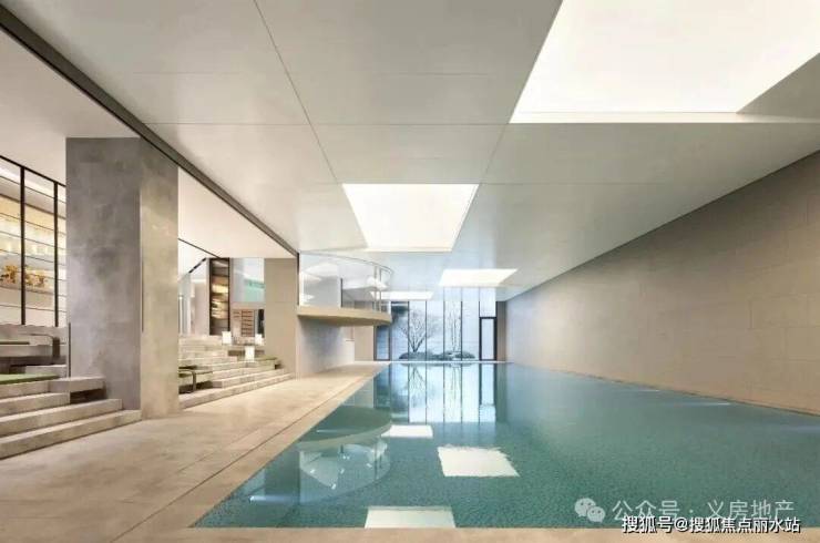 2、约1000㎡奢华会所,规划开放酒廊、阶梯式社交泳池、露台式健身区等
