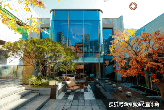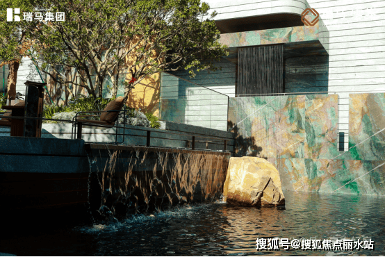 约80米宽、约12米挑高东方冠帽门庭,以传统“重檐庑殿顶”为魂,将归家的仪式感拉满。归家大堂,如步入精致艺术殿堂,景墙选用巴西雪山兰、铂金钻奢石,弧形转角尽显精致。在约500㎡山水下沉庭院,体验中芯难觅的诗意山水,约5米高叠瀑呼应千年泉脉,周边垂直绿化织就“森林氧吧”,百年乌桕与老桩紫薇的“树王对景”形成独特的人文巧思。