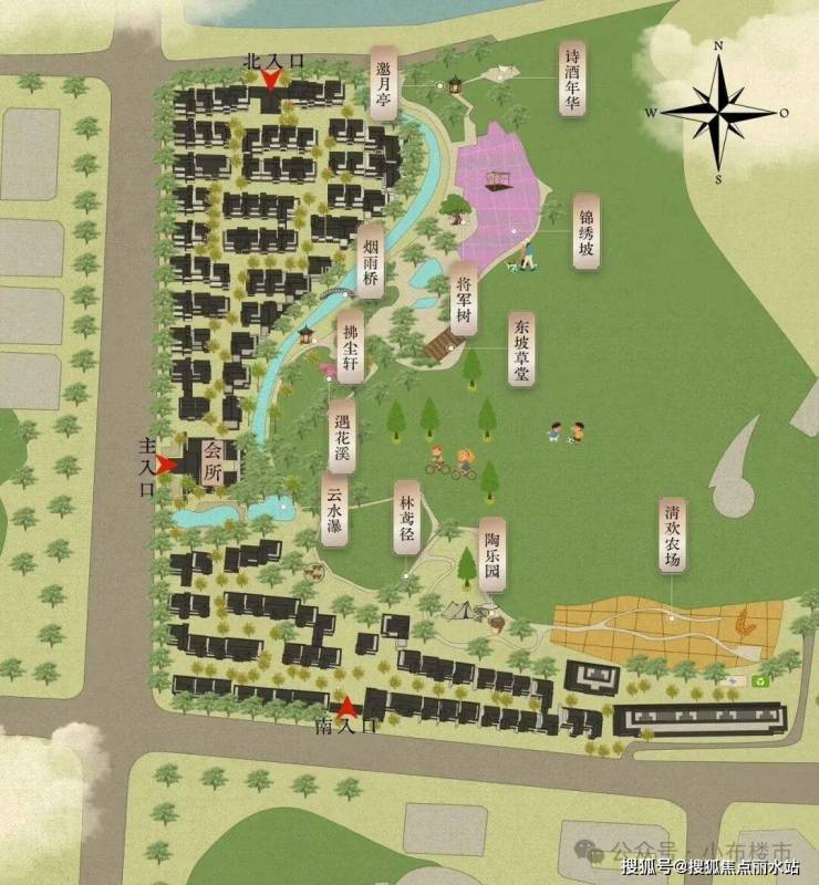 更有原绿城系核心设计团队,以刘松年宋画《西园雅集图》为灵感,打造“一轴,一带,四院,十乐”的山水景观长卷,复刻江南造园精髓,叠山理水、亭台楼榭,让西园雅集的千年风雅在此重现。