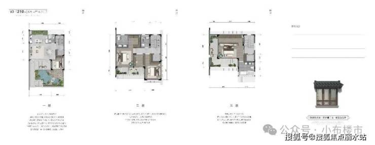 建面约205-384㎡宋风合院,高贵坡屋顶承载传家情怀,立体结构立面衍生观景露台,实体围墙围合独门独院的私密天地。前庭后院里,春有百花秋有月,夏有凉风冬有雪,圆满中国人的院居情结。