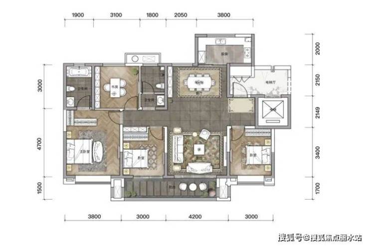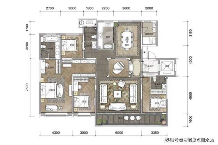 从格局来看,非常周整,几乎没有浪费面积,餐客一体,动静分区鲜明。细化到每个功能区,都排布合理,四面朝南的设计,明厨明卫的布局,主卧私享卫浴豪华套房,都在充分发挥着有限居住空间的最大价值。