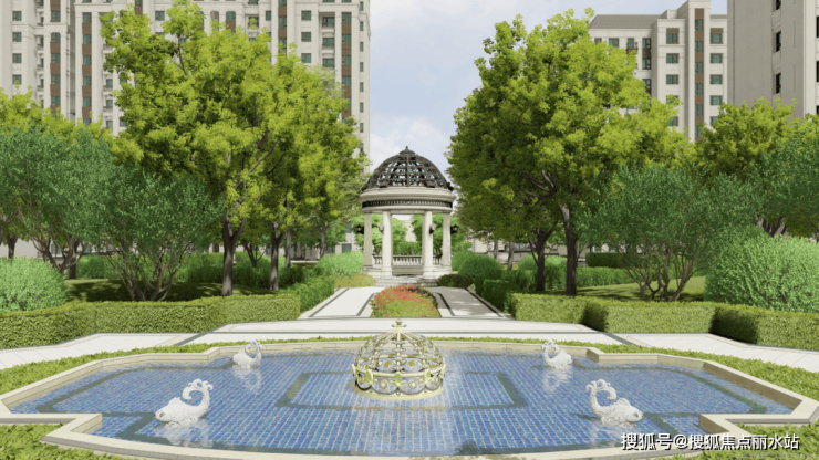 景观方面,枫丹公馆也是完全复刻了法式宫廷园林的风格。采用中轴对称,工整铺开的形式,结合全冠乔木、丛生灌木、低矮灌木、草花、硬质铺装、景观节点装饰、局部水景以及节点功能空间等8重造园手法,兼顾了宅前的私密性、主轴的便利性和仪式感、社区活动空间的灵活性以及不同节点的趣味性。尤其是我们的红枫大道、银杏大道和梧桐大道,相信以后一定 能够成为社区业主炫耀打卡的热点。