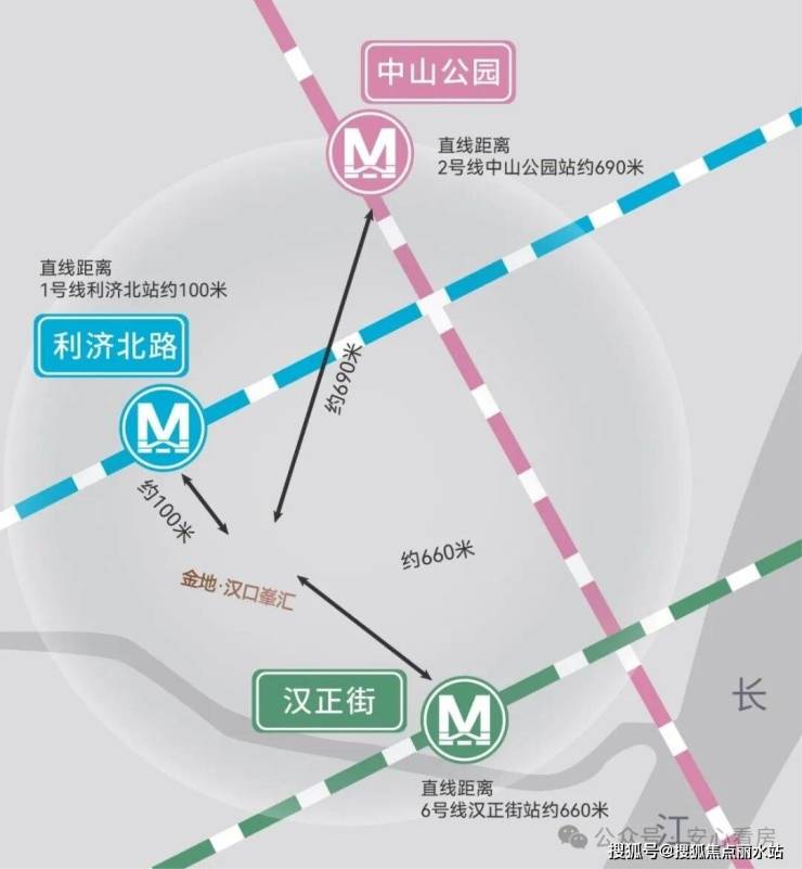 地铁:项目到地铁1号线利济北站直线距离约100多米,到地铁2号线中山公园站和地铁6号线汉正街站直线距离都约600多米。