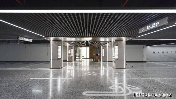 地库行车通道采用水磨石,顶部配置格栅吊顶,入户区域打造星空顶……超标准的选材,超惊艳的颜值。