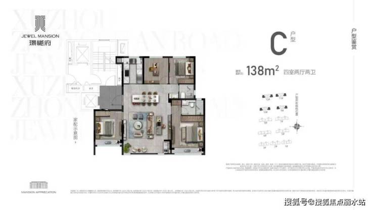 ● 建面约138㎡,4房2厅2卫:私享电梯厅;约12.5米南向三开间;约5.5米奢阔客厅联通阳台;套房式主卧,配备衣帽间+独卫+飘窗;北向灵活空间,可以分区独立使用,也可打通。