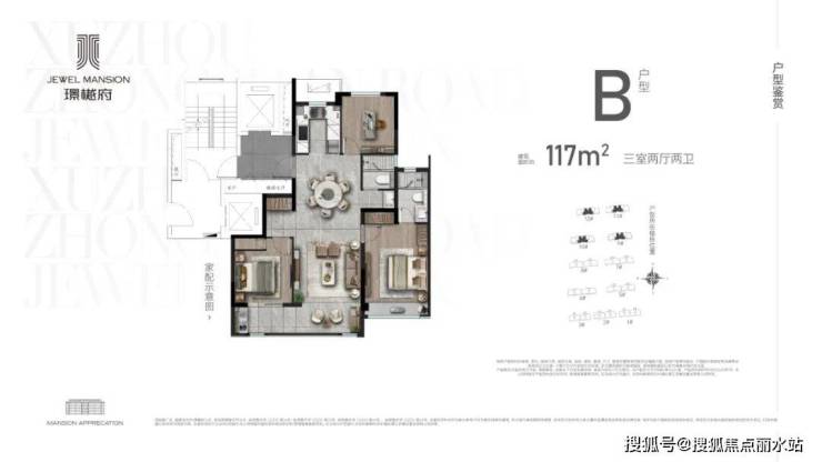● 建面约117㎡,3房2厅2卫:私享电梯厅;三开间朝南,约6.6米南向双联阳台;套房主卧带飘窗、衣帽间、独立卫浴。