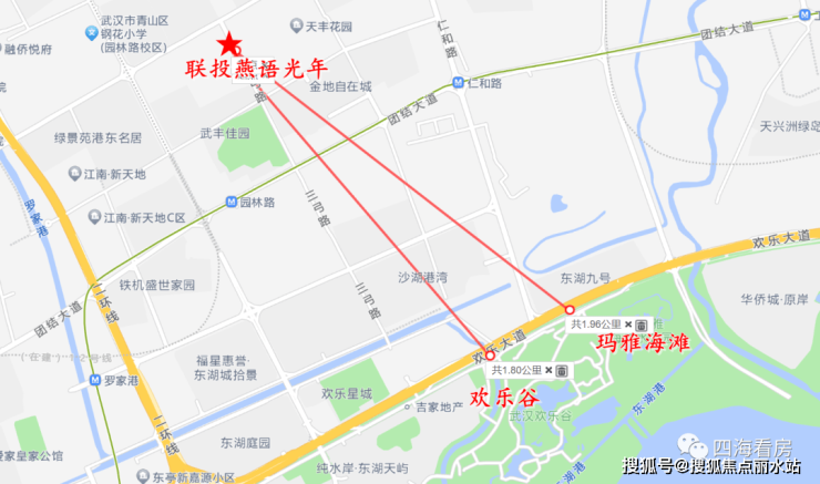 自驾:项目周边路网比较简单且汇聚了武昌几个重要主干道,横向的友谊大道、团结大道、欢乐大道连接二环线、三环线,沿二环线向北走就是二七滨江板块,沿团结大道向西直行,可以直达楚河汉街,自驾不堵车的情况都只要20多分钟。