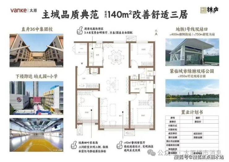 最后,地铁一号线即将开通,配套的小学已经开学了。小学毕业后,直升三十六中,太原少有的优质双学区楼盘。户型好,地段好,地铁旁,双学区,价格适合,才是硬道理。