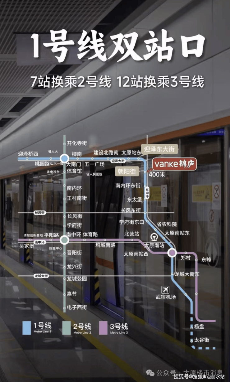 万科锦庐小区旁,二三百米就是太原地铁一号线站点,朝阳街站,出行方便。地铁一号线,已经开通运营。看得见的配套,才是好配套。未来,商业体规划,也可能落地。小区往南,地铁一站地,就是双塔公园。