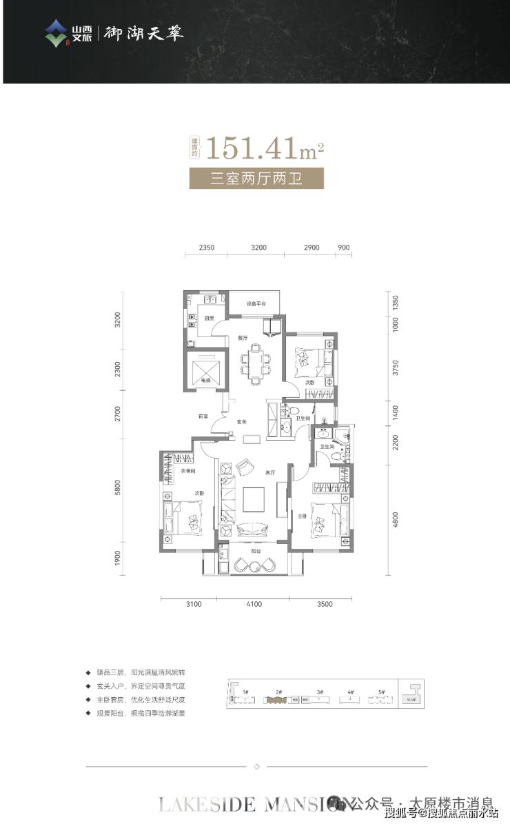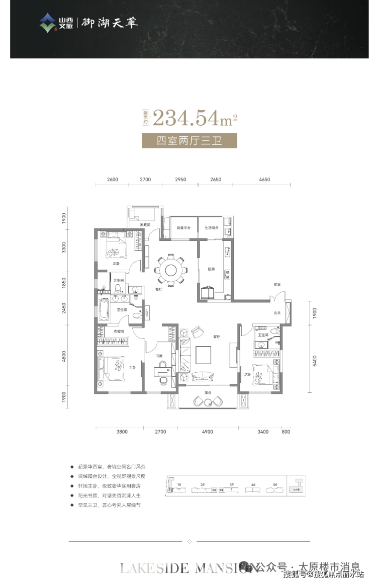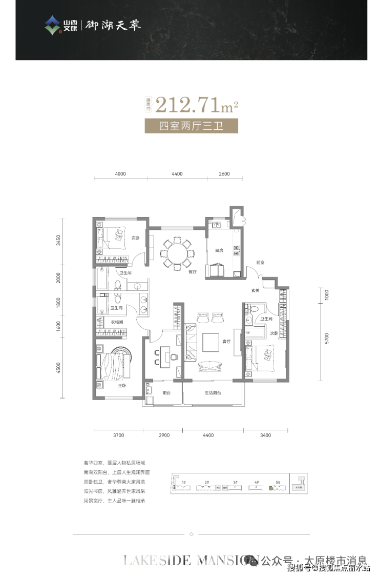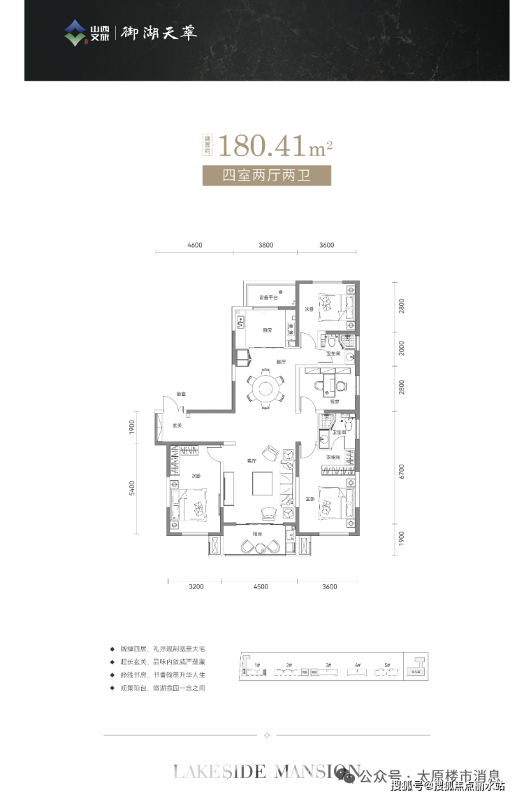 山西文旅御湖天萃,直面晋阳湖,对望三千年,省国企开发,对口山大附中晋源校区,紧邻晋阳湖公园。户型面积145平到234平,一线湖居大宅。