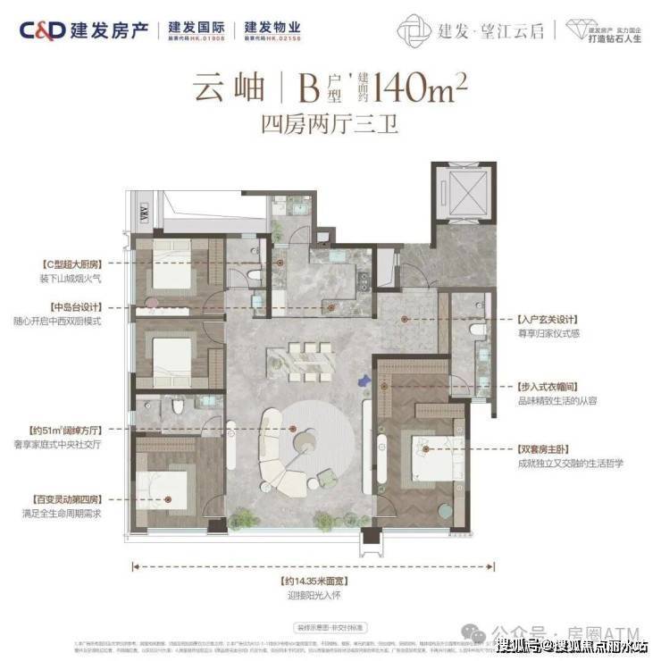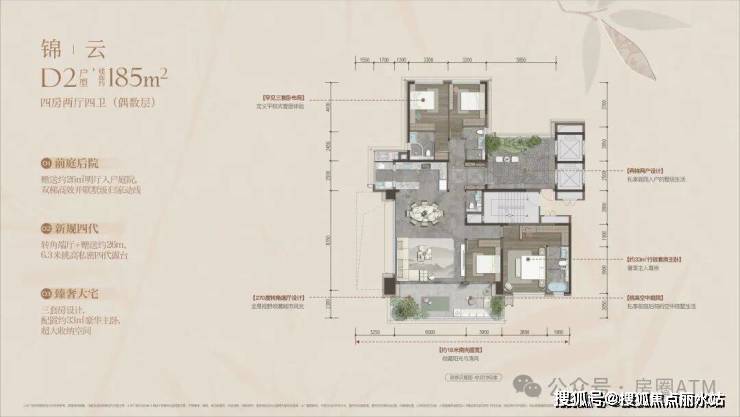 建面140㎡的户型更夸张:实得建面182㎡,不仅做了双套房设计,还配了约51㎡的“旋转方厅”,既能当家庭社交中心,也能拆分出独立空间;而建面185㎡的户型,实得直接冲到252㎡,不仅有三套卧、约18米南向面宽,还带挑高中庭庭院,相当于把“别墅感”搬进了高层里。售楼处电话400-8787-098接通后输入5678【营销中心】