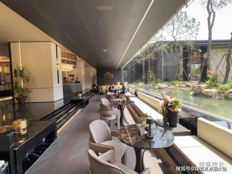 这里既是现在的售楼部接待处,也是未来1#的泛会所主题架空层,设计的像高级度假酒店一样。宸岸栖月总共有3幢主题架空层。