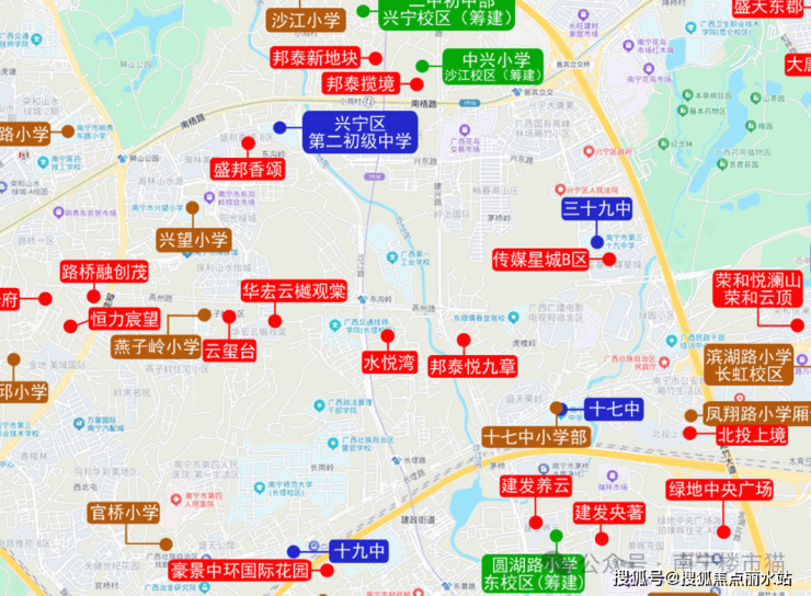 另外,邦泰悦九章也不差,距离3号线东沟岭地铁口约600米左右,一路之隔规划幼儿园,附近还有一所青秀官宣长堽旧改配套的南宁市逸夫小学教育集团的分校办学。