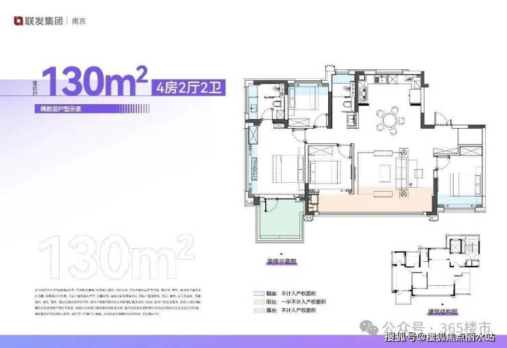建面约130㎡,4房,超大露台+阳台,四代宅的“空中植物园”名副其实。