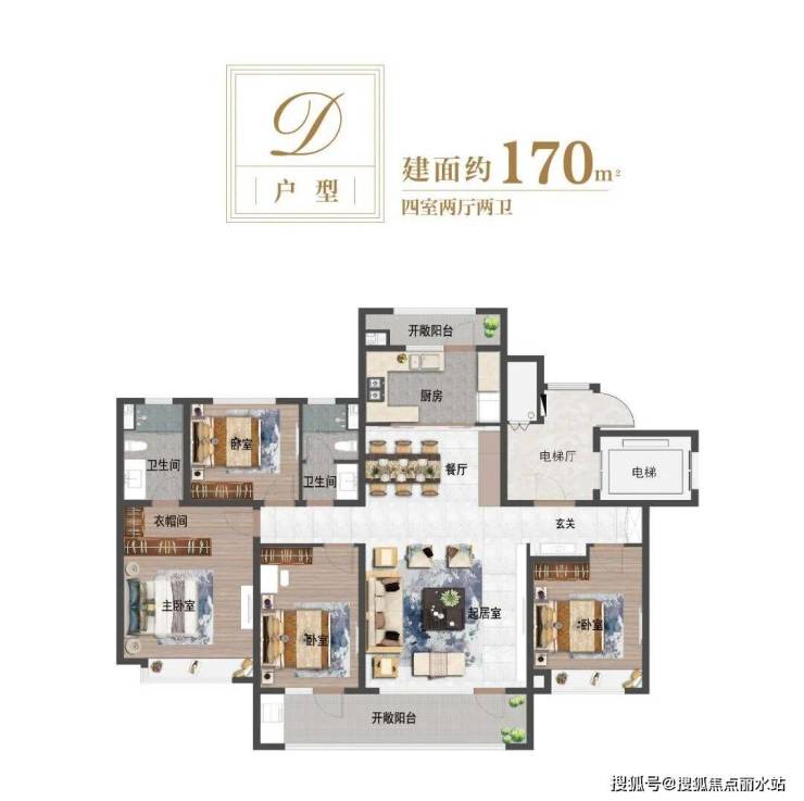 170平米的四居室,将尺度感、仪式感和品质感拉满。超14米的南向四开间,可实现全揽阳光入室;将近8米的开敞式阳台,又具绝佳的观景效果;两个南向卧室还都配有飘窗,是业主自处的好去处;当下流行的客餐厨一体化设计,尺度空间饱满,让家庭成员间的互动的交流不设防;而主卧的套间化设计,配有独立卫浴及衣帽间,私密性和品质性立显。