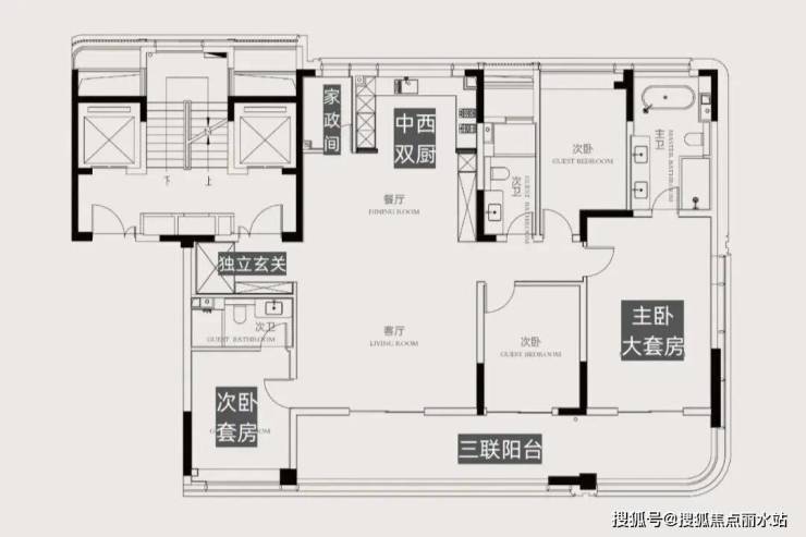 一梯一户一层,双开门入户+主卧双开门,22.4米南向五开间,66㎡LDKG公区+33㎡270°环形阳台(半赠送),四间套房全独卫,下楼直达风雨连廊衔接会所,顶豪配置拉满。