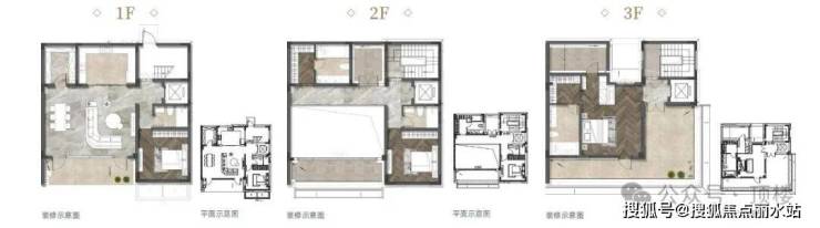 别墅:A户型约270㎡(三层/三房两厅四卫/26套)、B户型约310㎡(三层/三房两厅四卫/17套)、C户型约335㎡(三层/三房三厅五卫/6套)、D户型约365㎡(三层/三房三厅五卫/3套)、E户型约390㎡(二层/四房三厅四卫/4套)。平层:220㎡(四房两厅三卫/48套)