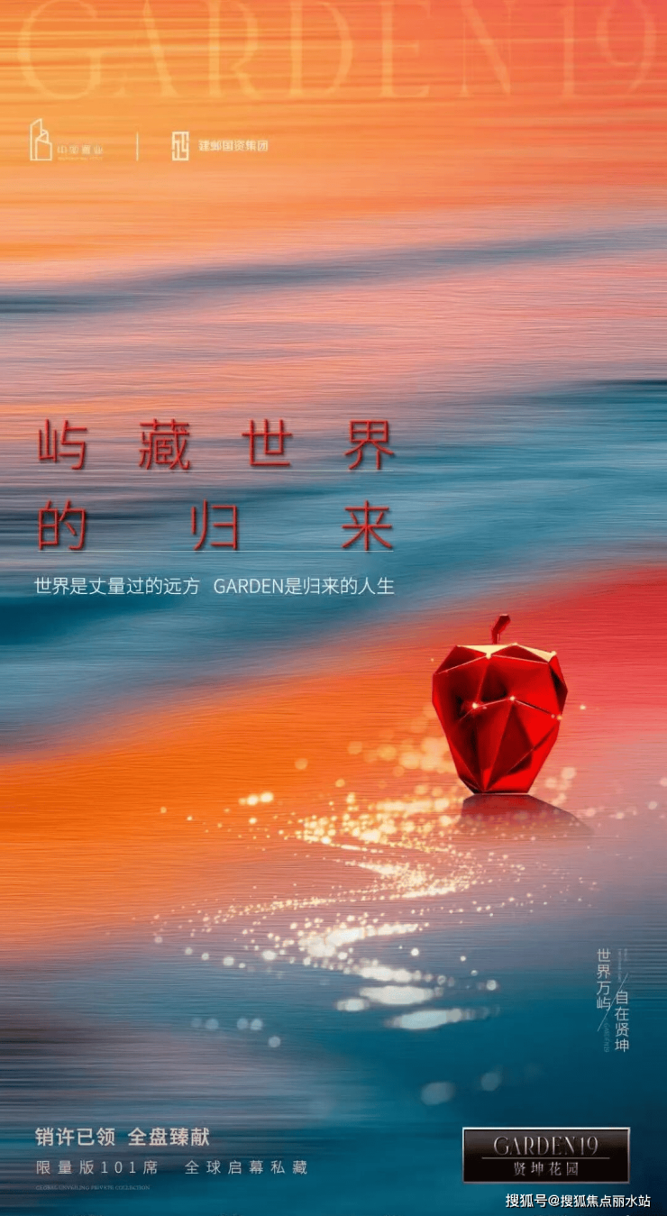 一个纯粹的墅质花园洋房群落超级场域提前实现:一座艺术浮桥链接两岸家园,葡萄牙米黄色石材、仿铜铝板、陶砖竖线和大面积玻璃结合的经典百年建筑格调、功能互补的共生会所体系、同频化的中央水院等园林打造、超级IP红色苹果雕塑等,共同为客户构成一幅内生循环、功能完整的美好生活共同体。
