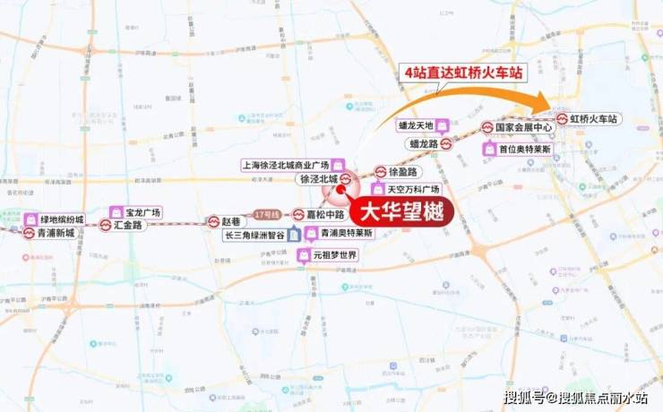 大华望樾直线距离徐泾北城站仅约80米,步行景观桥直达地铁口,1站到天空万科广场,2站达蟠龙天地;
