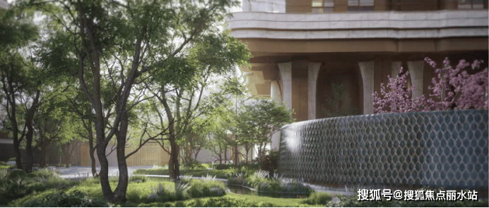 地面铺装采用祖母绿切面工艺,水景如蓝宝石晶莹,侧立面格栅呈现琥珀质感,细节彰显奢华,种植100余种名贵植物,四季风貌更迭。