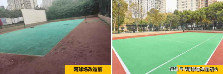 再比如小区一角的网球场,经过多年使用,塑胶地面不可避免老化,2021年才进行了翻新,让业主运动更安全。