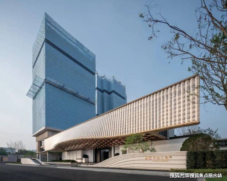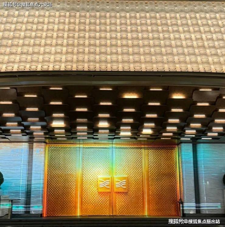 你看社区大门宽约46米,高约9米,灵感源自“京杭大运河博物馆”设计,顶部大约2280块水晶瓦精心雕琢,内部超300块金鳞铝板手工拼接,还有层叠水景,整个一看就贵气。