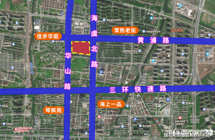 交通方面,东侧是常熟南北向的主干道之一--海虞北路,往南直线距离600米左右就是三环高架,并且上下匝道都很方便;北侧的黄浦路直通城铁板块,偶尔需要出个远门去常熟站也很方便。
