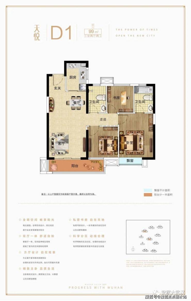 【舒·悅-D1】建面约99㎡,三室两厅两卫