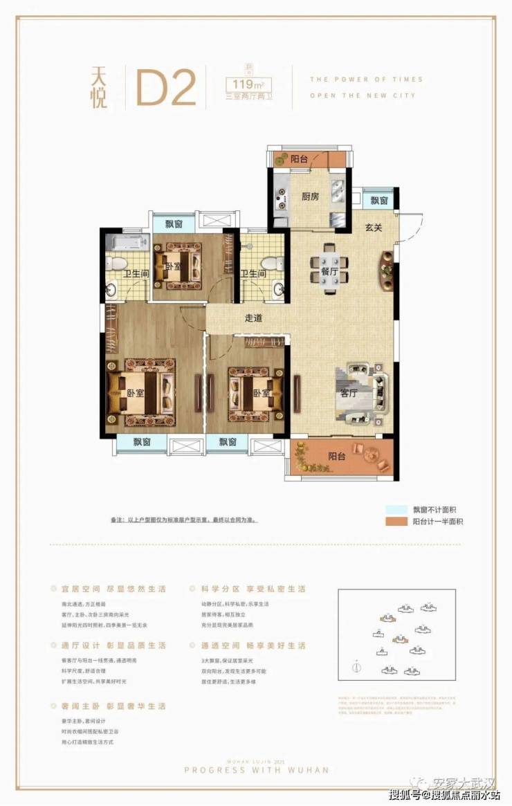 【逸·悦-D2】建面约119㎡,三室两厅两卫