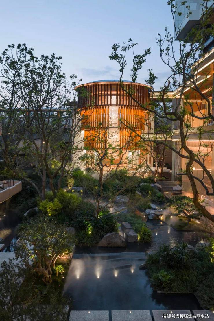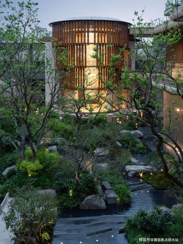 最后折叠森林的步道,与传统项目单调的景观动线不同,江宁金茂府打造的更像一处秘境,通过叠级步道和照壁流水的设计,创造出了多个观景节点,每一个转角都可能带来意想不到的惊喜,调动人的探索欲,增加了庭院的趣味性,让业主在行走过程中充分体验到“观景 + 舒缓”的感觉