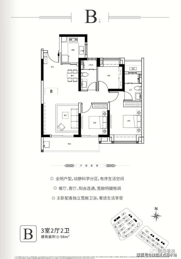 在售户型:#4主推产品为约98-116㎡墅质高层,三居方正户型