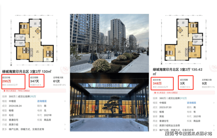 某壳网显示:2024年8月24日,绿城海棠印月北区建面130㎡的一套房子,成交价仅有2万2每平;