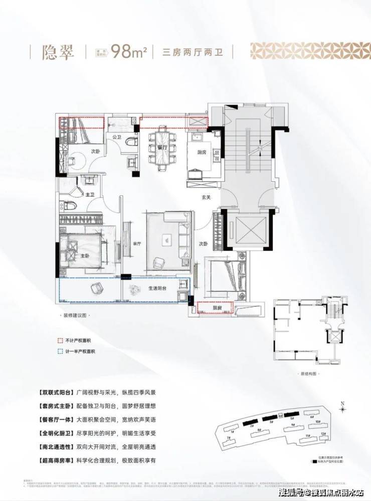 约98平|隐翠户型 舒适三房构筑阔绰空间