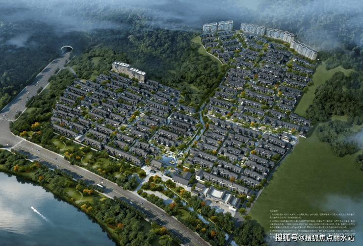 有贯穿整个地块自南向北缓缓淌去的,有在组团里形成叠水溯回的,更有如玉带环腰环伺在家门口的小石桥上的。