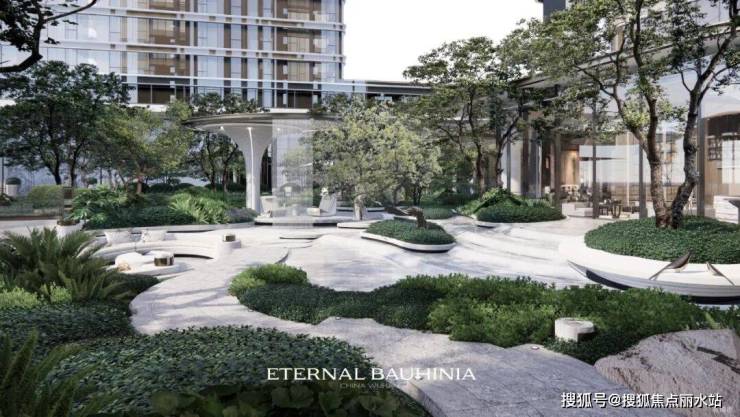 约150㎡私享天光水景间,浮筑一方休憩空间,奢石水景悬浮绿道,打造“孤岛临流”之精美,潺潺流水间享受诗意生活。