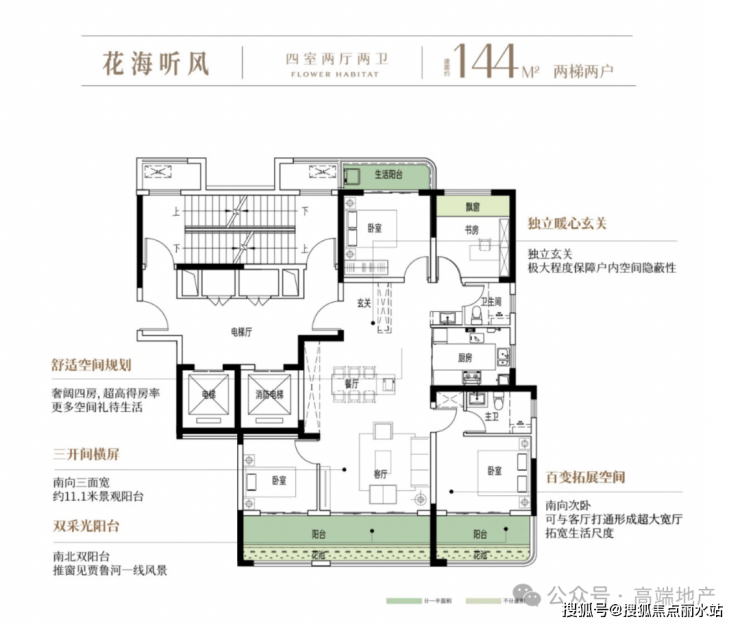 【建面144㎡4居】180.0-188.0万-分布于17号楼 ,2梯2户,层高2.95米,总楼层21F