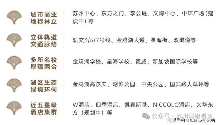 坐揽金鸡湖与独墅湖城市地标、商业旗舰、城市公园、五星级酒店、文化剧院等繁华盛景,苏州中心、东方之门、中环广场等地标配套环湖而立,奢享开放包容的国际滨水生活圈。