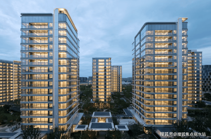 项目立面参考杭州顶豪绿城·芝澜月华,最高约0.62的极致窗墙比,形成近乎全面屏的立面,俯瞰270°环幕江景,打造江岸边的未来式建筑。