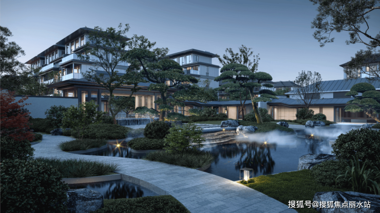 同时,以宋代古典山水宅园代表作品——苏州网师园为蓝本, 打造“探、观、悟、弄、隐”五重境。同时规划“引、礼、探、赏、归”五重归家礼序,移步换景,步步风雅,演绎宋式园林气韵不凡的美学意境。