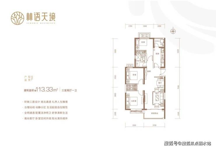 主推面积:约113.33㎡三室两厅一卫 约118.76㎡三室两厅一卫