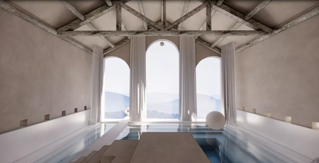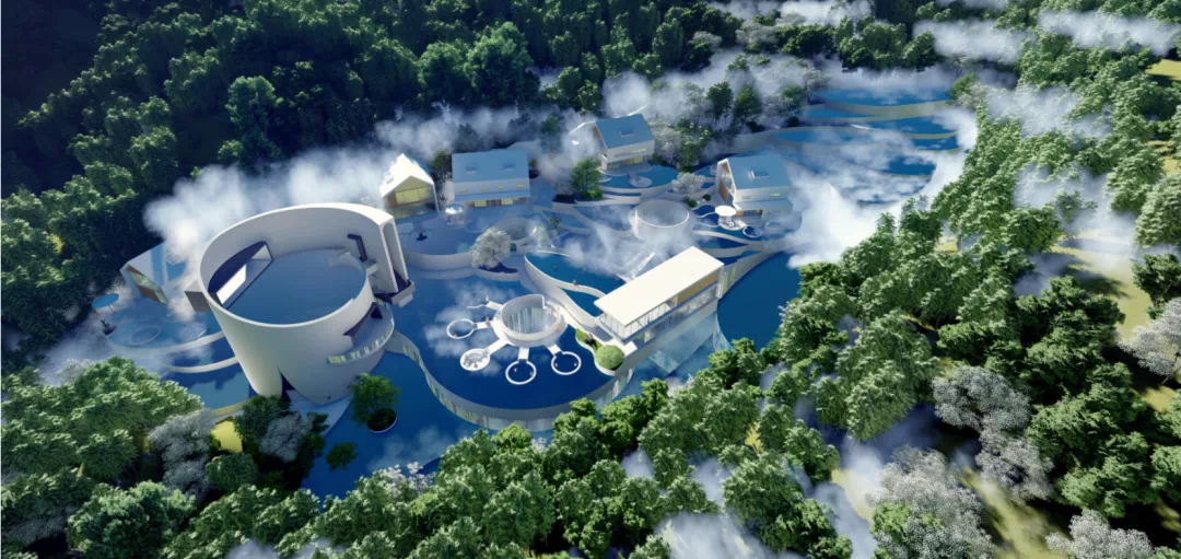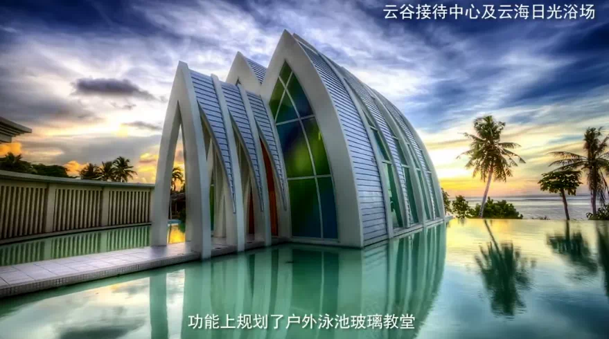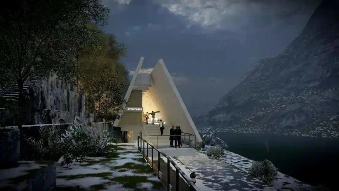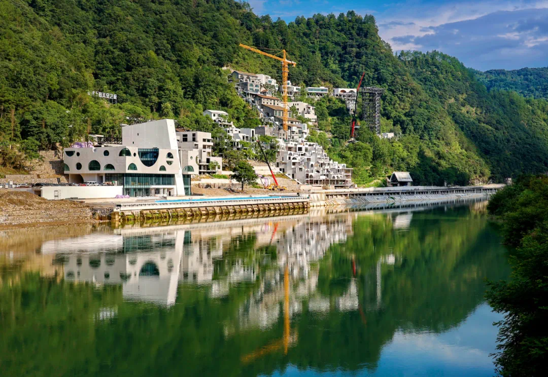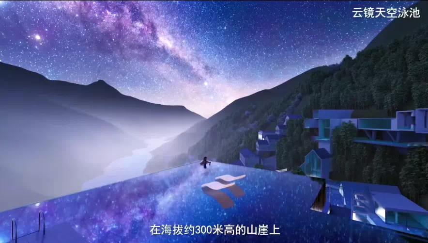 该项目总投资约15亿元,通过对已废弃的铁矿区及矿洞进行绿色环保改造,植入先锋文化理念、艺术设计,在青山绿水间,打造一个“浮游”在悬崖上的“天空之城”。
