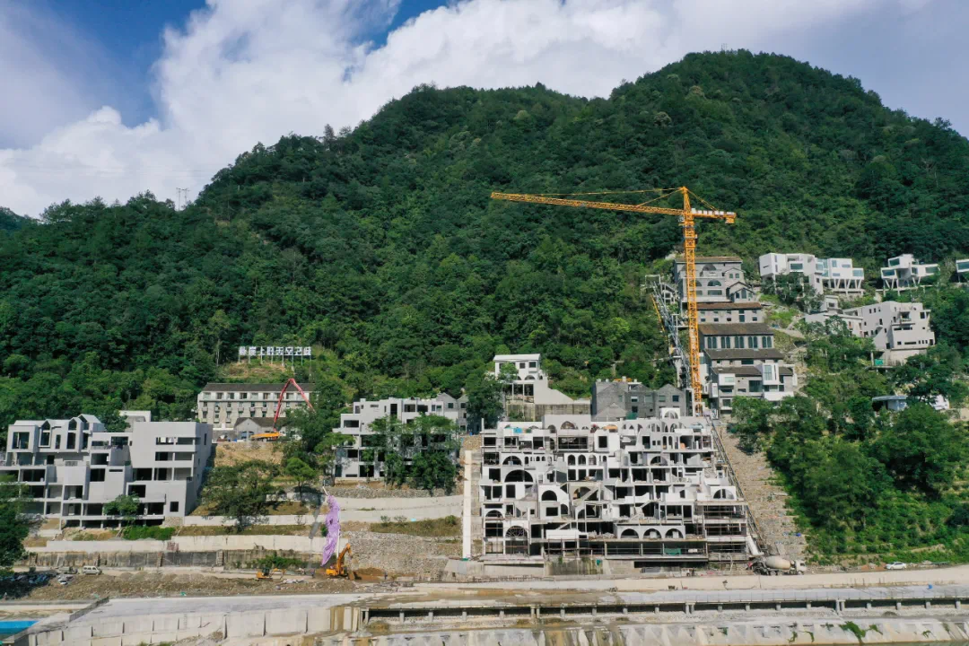 景宁畲族自治县那云·悬崖上的天空之城项目坐落在鹤溪街道原扫口村老鸦尖西麓(景宁包山铁矿区块),距县城西南约5公里,总用地面积176余亩,建设用地面积49余亩,目前项目收尾工作正在有序高效进行,项目主体已初具雏形。