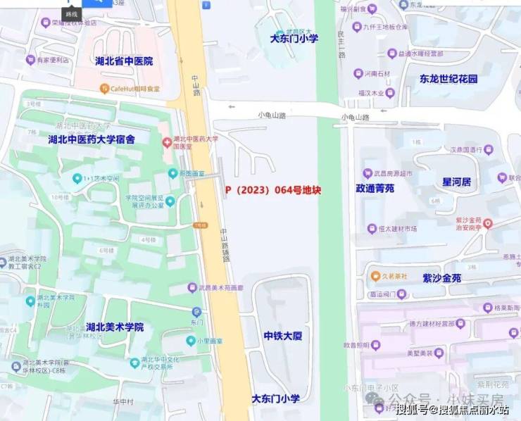 P(2023)064号地块位于小龟山路与中山路的交汇处,地铁小东门与螃蟹岬站的中间,属于正宗武昌内环。
