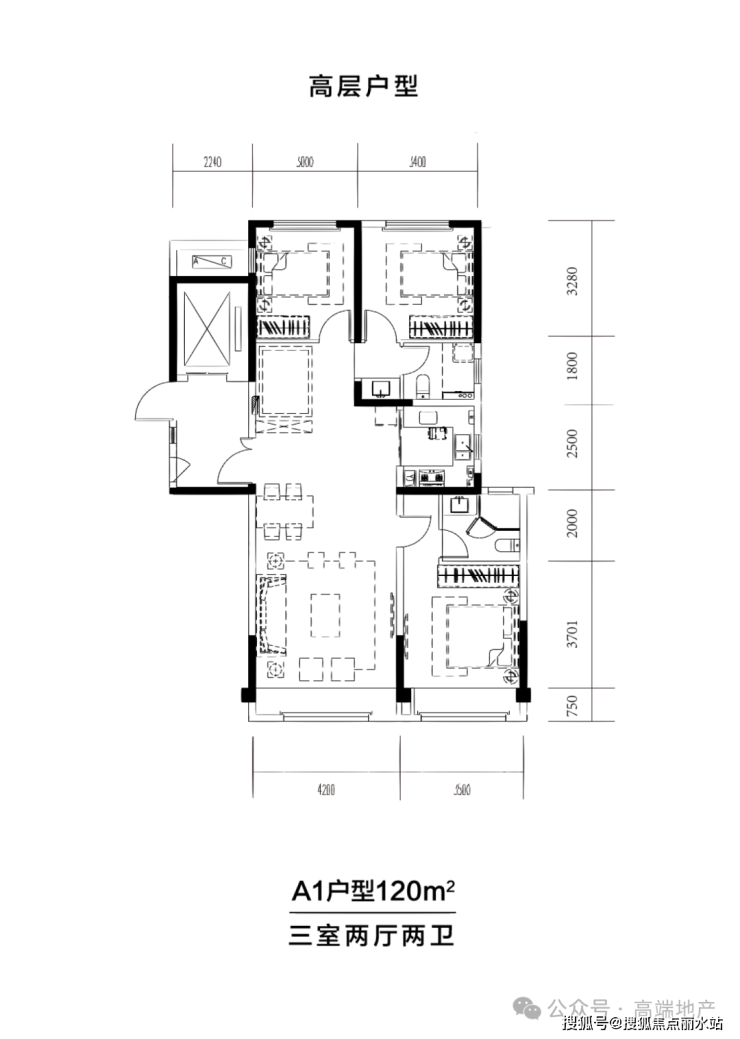 【建面120㎡3居】168.0-175.0万-分布于4号楼 ,2梯2户,层高3.00米,总楼层16F