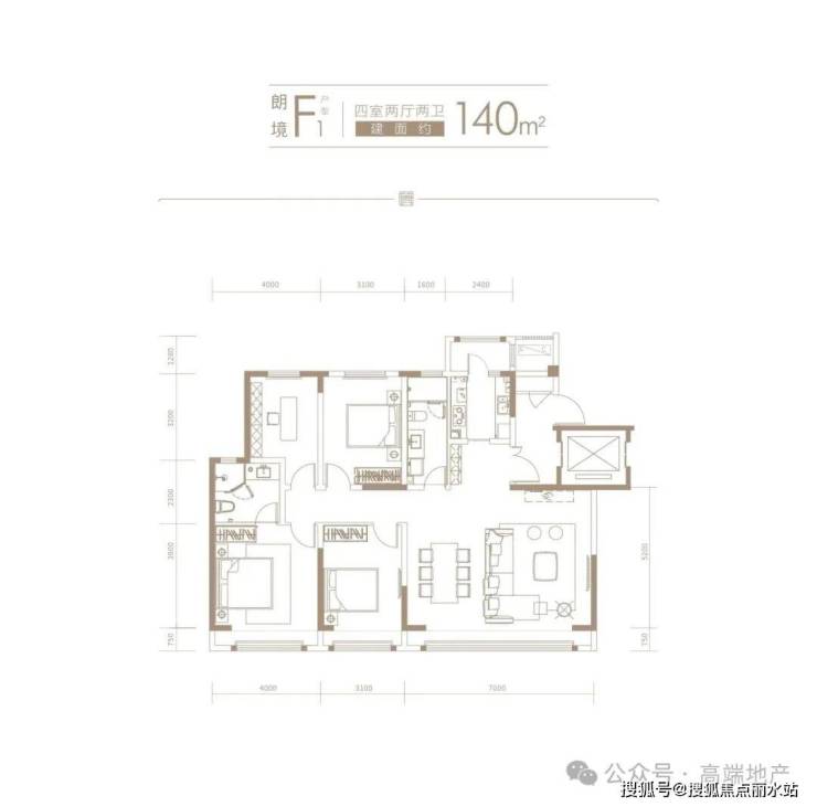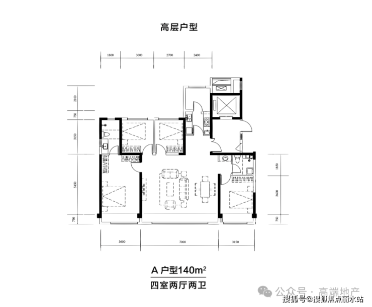 【建面140㎡4居】195.0-215.0万-分布于1号楼 ,2梯2户,层高3.00米,总楼层17F