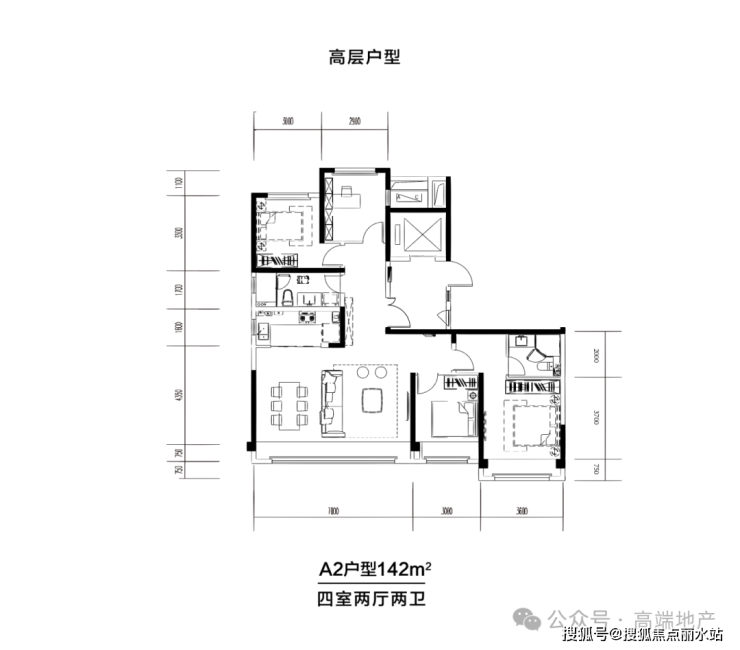 【建面142㎡4居】200.0-215.0万-分布于4号楼 ,2梯2户,层高3.00米,总楼层16F